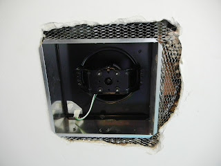 The old fan was round and the new one is rectangle so when I replaced the fan I had to do some serious patchwork to fill in the gaps, thankfully I had some metal lathe that I used and used joint compound for the filler.